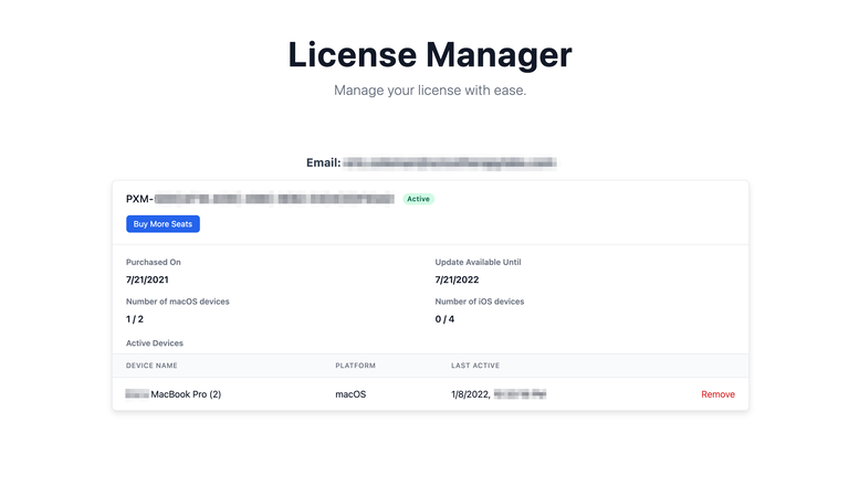 显示许可状态(购买日期、到期日期、Mac / iOS 座位数)